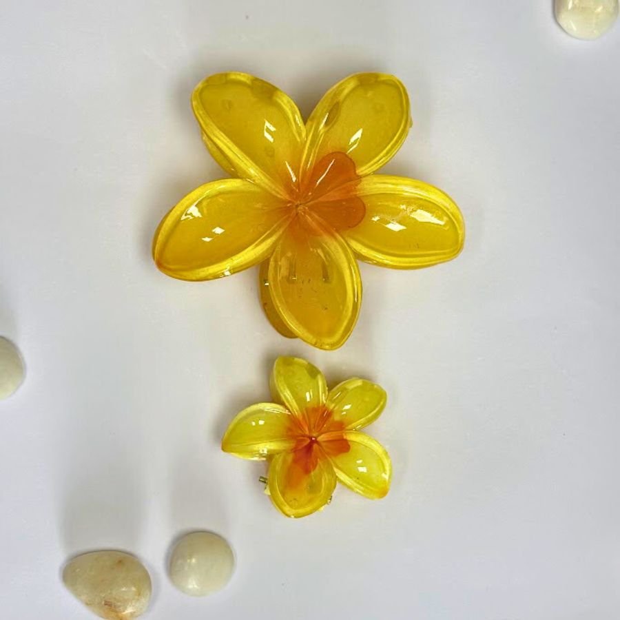 Bring a fresh floral vibe to your hairstyle with our Flower Hair Clip Combo. Each set includes one big clip and one small clip, crafted in vibrant translucent colors that shine beautifully in light. Perfect for festive looks, beach vibes, or casual chic styling.