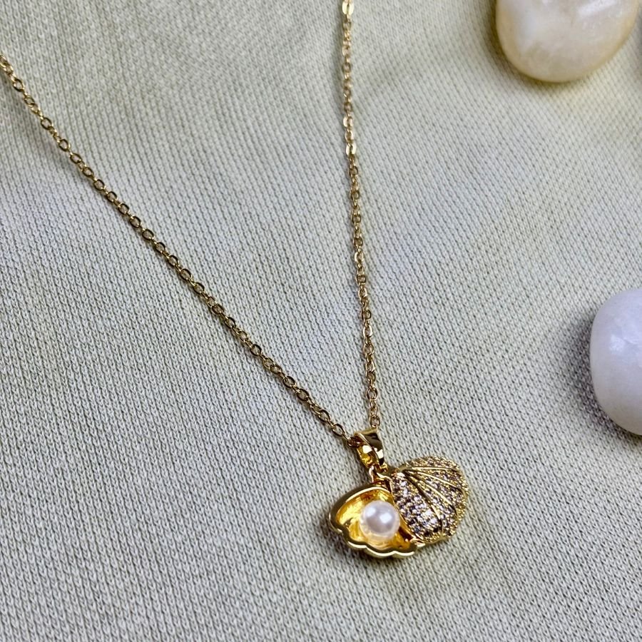 The Gold Shell Pendant Necklace is a timeless piece that blends subtle charm with modern elegance. Inspired by the beauty of the ocean, the shell pendant adds a touch of uniqueness to your look while remaining minimal and versatile.