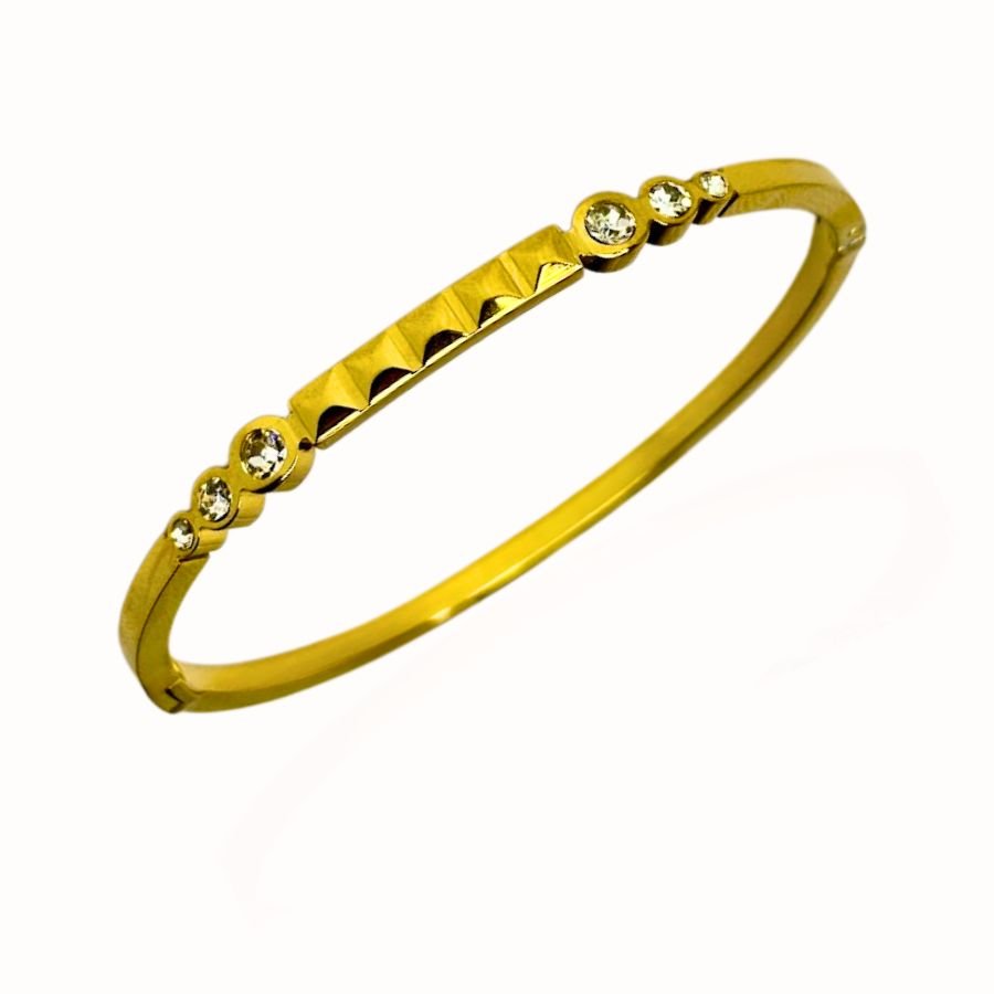 Add elegance to your jewelry collection with this golden designer thin bracelet featuring sparkling crystal detailing. Lightweight, stylish, and this piece is perfect for both daily wear and special occasions.