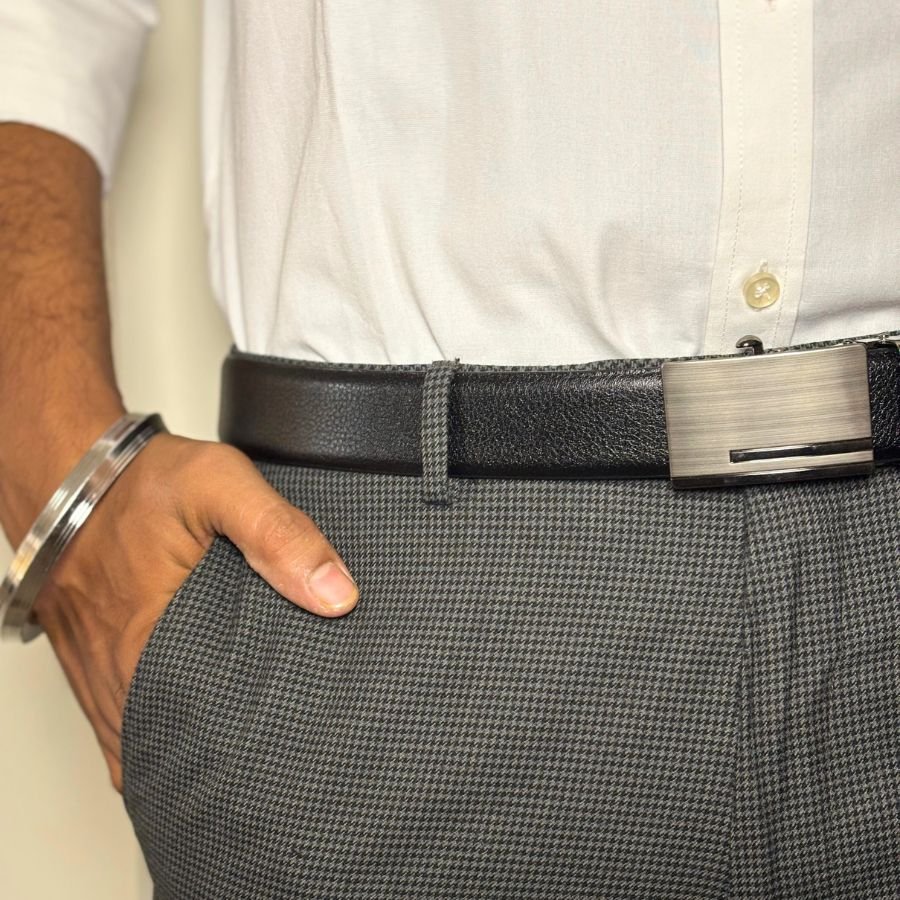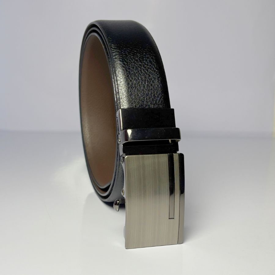 A premium reversible belt crafted for modern men combining a rich black textured leather finish with a sleek auto-lock buckle. Perfect for both office formals and smart casual looks, this belt delivers style, comfort, and versatility in one.